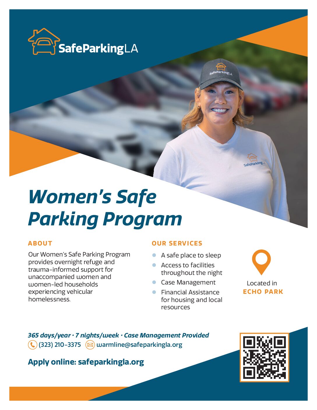 The program is designed to center women and is open to gender-diverse participants. As with all Safe Parking LA sites, it is low-barrier and inclusive of LGBTQ+ individuals and families.